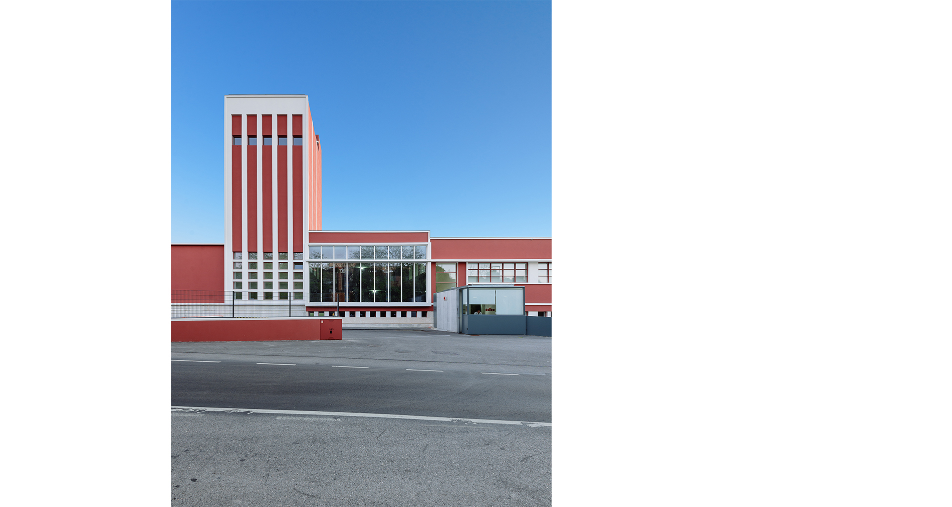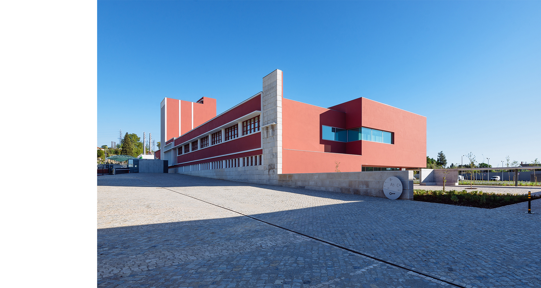 The strong presence of this building in the former National Road 1, currently known as Rua Manuel Madeira, can be seen, mainly, on its elevation extended along the way, with a modern language where the horizontality and the repetitive rhythm, given by the openings and friezes, are outstanding. On the other hand, the vertical gestures of the tower used to protect the Silos, attached to the transparent Manufacturing Room, and of the limestone wall where the institutional masts are anchored, appear in clear contrast on both east and west ends of the elevation, respectively.
