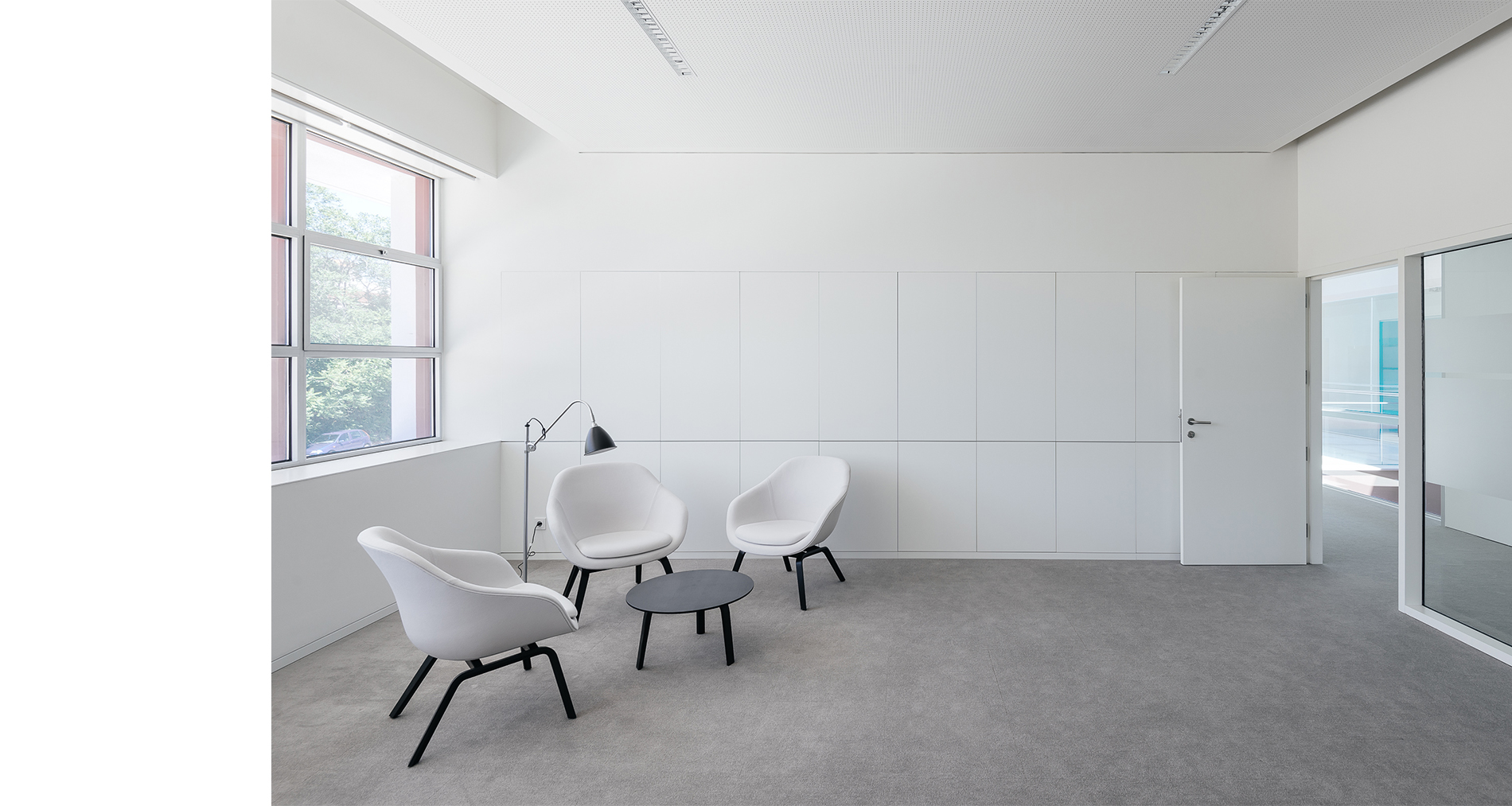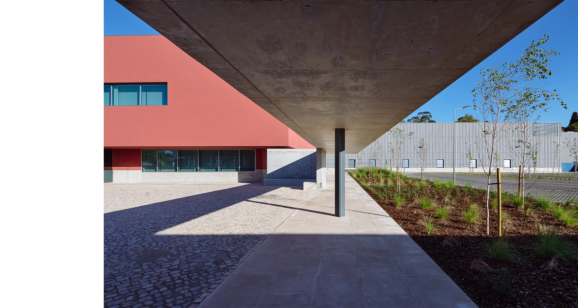 The programmatic distribution required for the Headquarters and Logistic Centre of the Plural Pharmacy Cooperative?s new facilities led to various interventions in the remaining complex: the principles of preservation and valuing applied in the rehabilitation of the old Tower of the Silos and the Manufacturing Room were also considered for the existing public façade which determined the height, the finishes and the colours of the new interventions; the new construction, attached to the rehabilitated main façade, materializes in a markedly contemporary language that, rather than creating safety distances, attempts to assume the possible compromise on a purposely dubious contagion between two lexicons: yesterday and today.