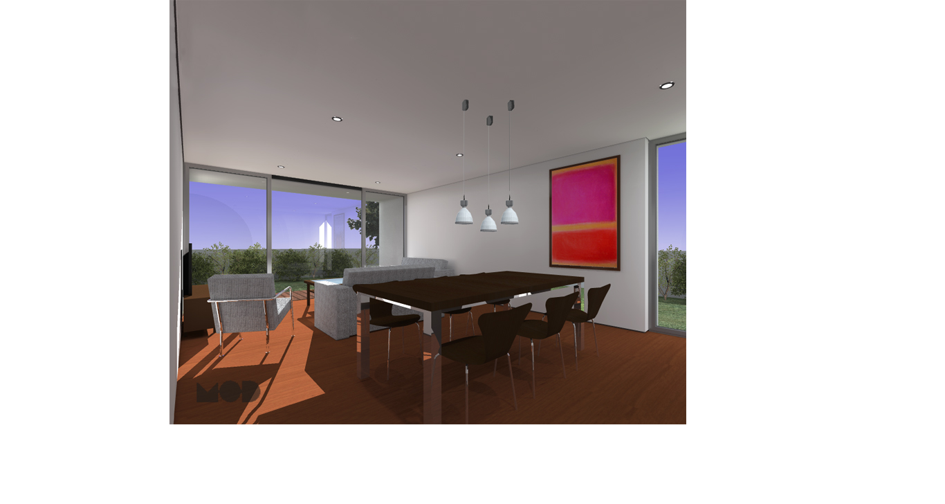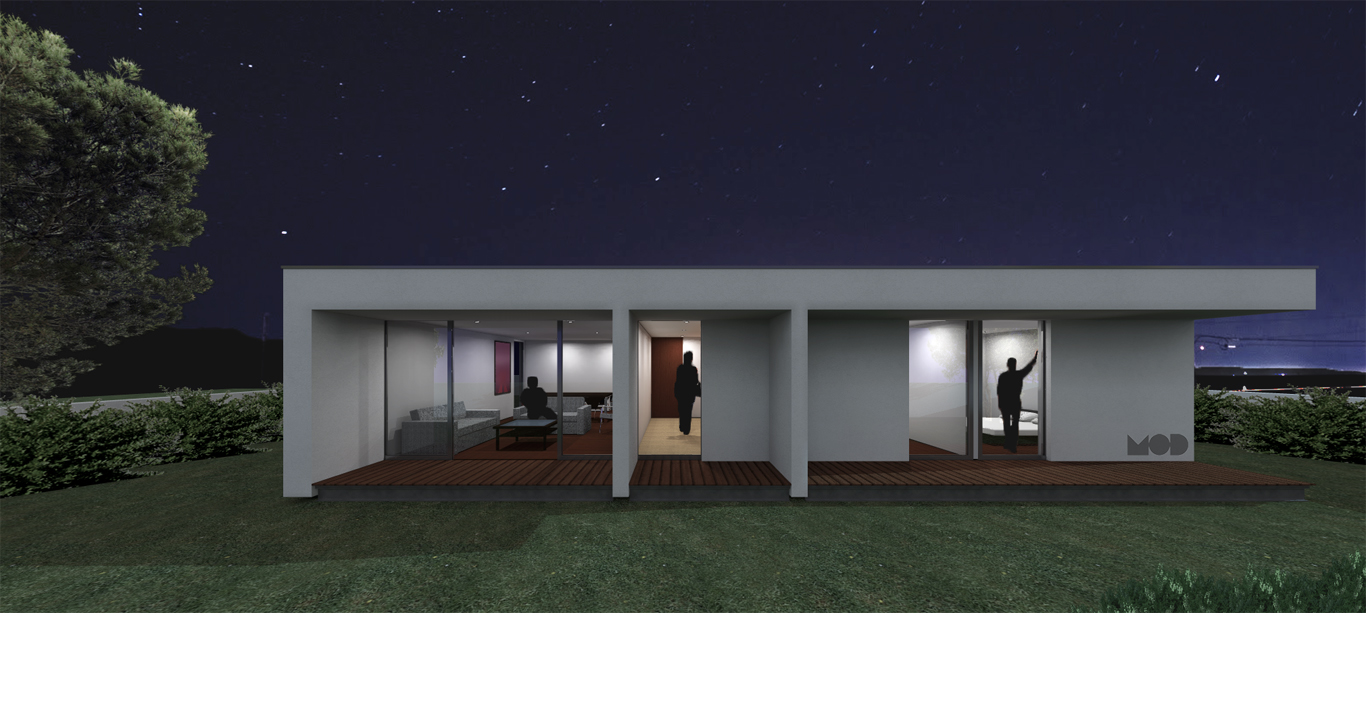 O desenho interior e acabamentos confirmam a abordagem contemporânea do exterior da moradia: linhas rectas, ausência de recantos, inexistência de vigas ou pilares salientes, primazia à funcionalidade e modularidade também na pormenorização construtiva - desenho de portas, armários, caixilharia, etc. Com revestimento base, por razões económicas, em cappotto, o sistema está também apto a receber acabamentos em placagem de betão, cortiça ou cerâmico.