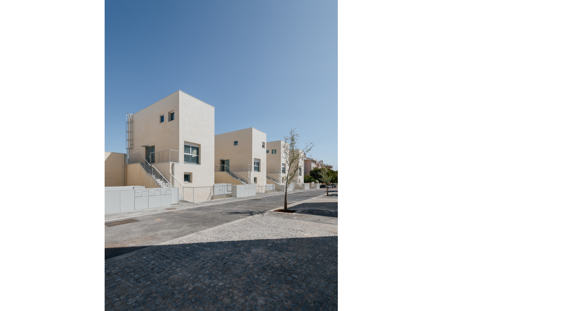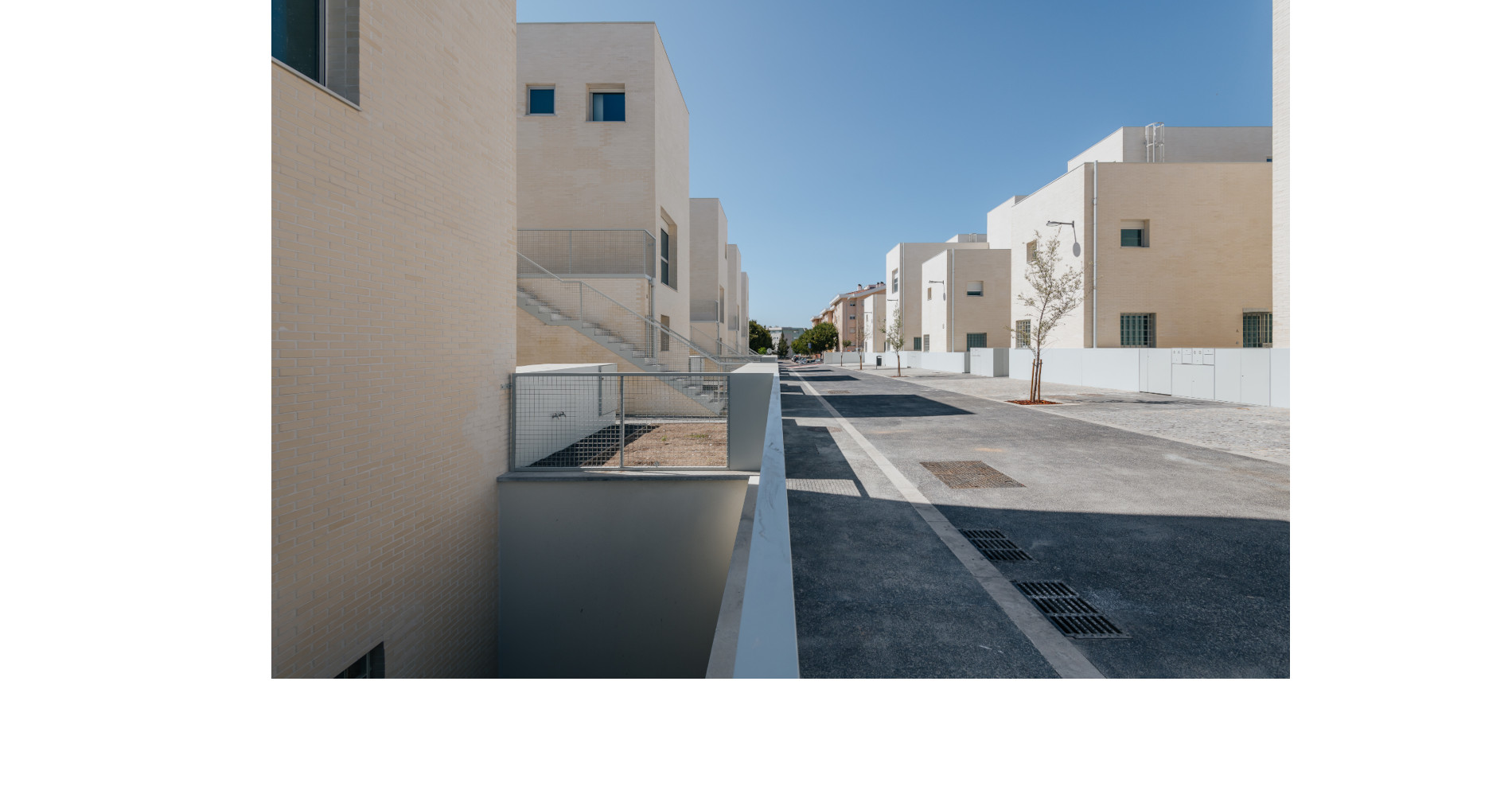 Também aqui, a fragmentação volumétrica produz uma série de pracetas urbanas de pequena escala, valorizadas pela integração de talhões cultiváveis que promovem a vida urbana sustentável e a interacção social entre os moradores. Estes espaços exteriores funcionam como bolsas de transição, mediadoras entre a escala urbana da cidade e a escala doméstica das residências.