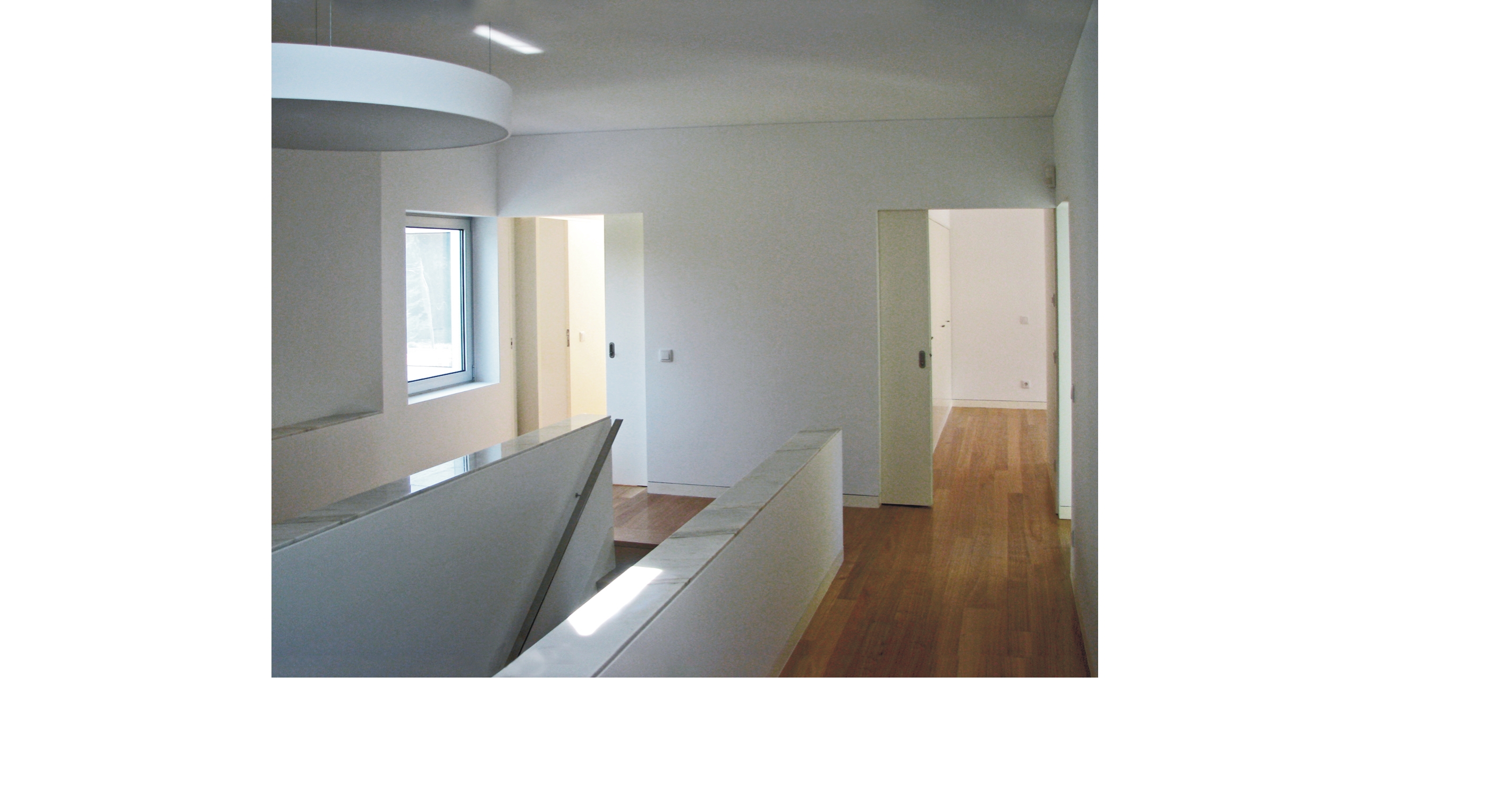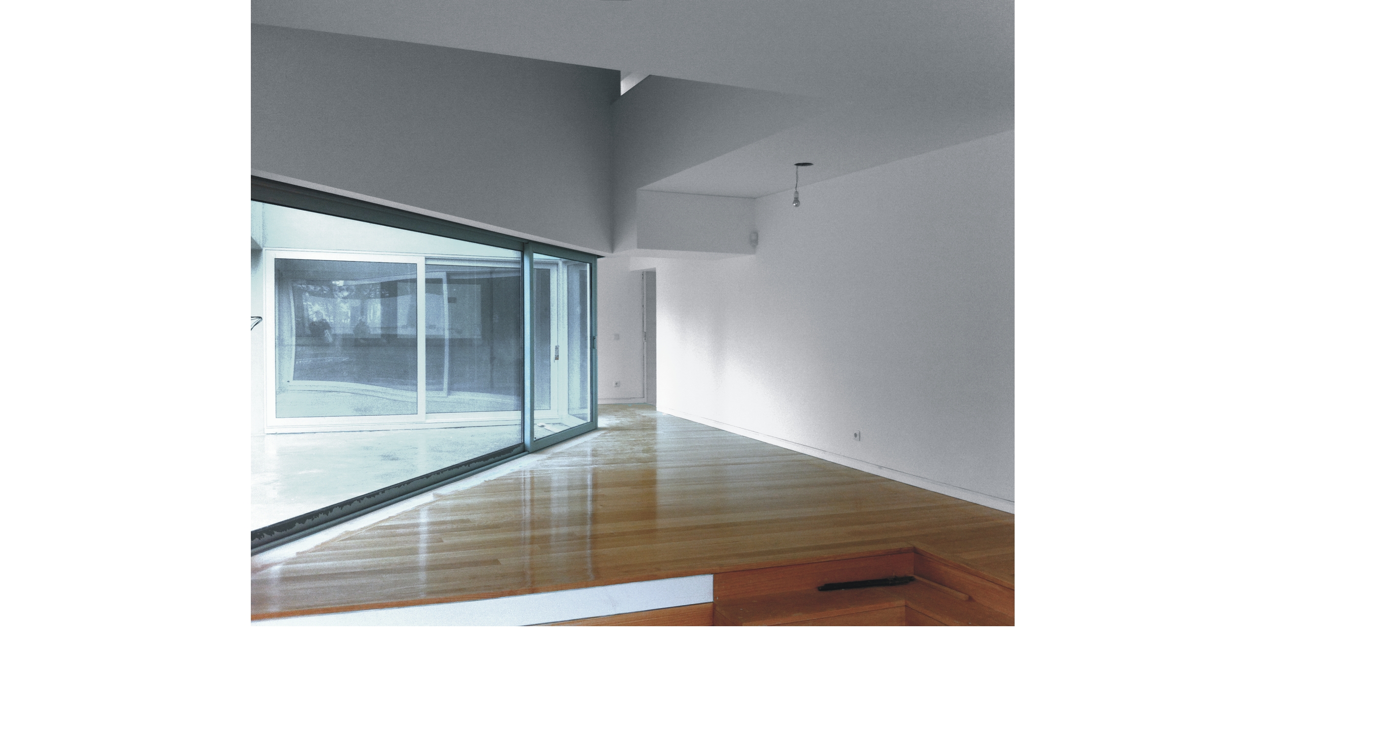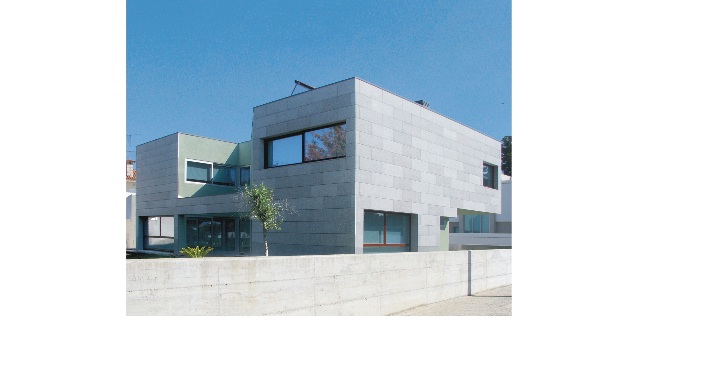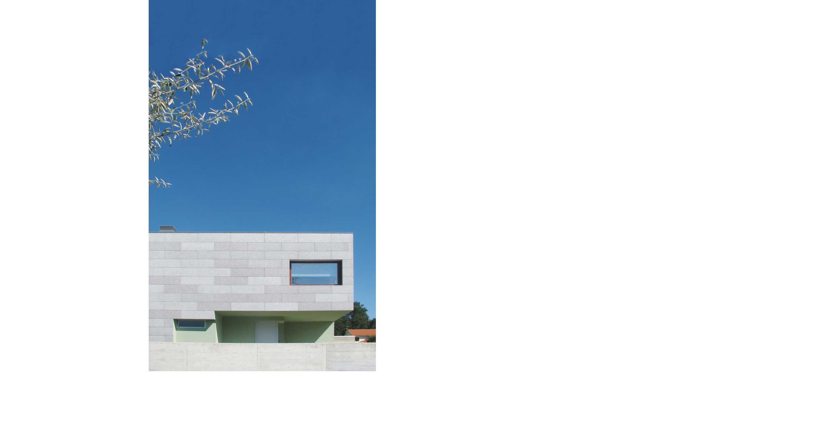 Trata-se de um projecto de construção destinado a habitação unifamiliar, composto por cave, rés-do-chão e primeiro andar. O acesso automóvel faz-se a partir da rua a nascente do lote, que, situado numa esquina, tem também frente a sul, estando prevista para o referido gaveto o acesso pedonal principal. O terreno plano confronta-se, a norte, com uma parcela de fim habitacional - construção de dois pisos e anexo - e a poente com um prédio rústico. Inserida numa área predominantemente residencial, esta construção rege-se pelos parâmetros da envolvente: edifício de habitação isolado e com cércea correspondente a dois pisos acima do solo. O lote em questão foi sujeito a um projecto de alteração ao alvará do loteamento, reunindo dois lotes num só e construindo, no novo lote, um piso abaixo da cota soleira. O piso térreo é composto por hall de entrada, instalação sanitária de serviço, quarto com instalação sanitária privativa, cozinha e sala comum, para além dos acessos à cave e piso superior. Na cave, para além da garagem, estão centradas as áreas de lavandaria, secagem de roupa, bar/garrafeira, arrumos e arrecadação, existindo ainda uma instalação sanitária. Dois espaços exteriores permitem a iluminação/ventilação desse piso. No piso superior encontram-se quatro quartos, dois deles com instalação sanitária privativa, e uma instalação sanitária independente.
