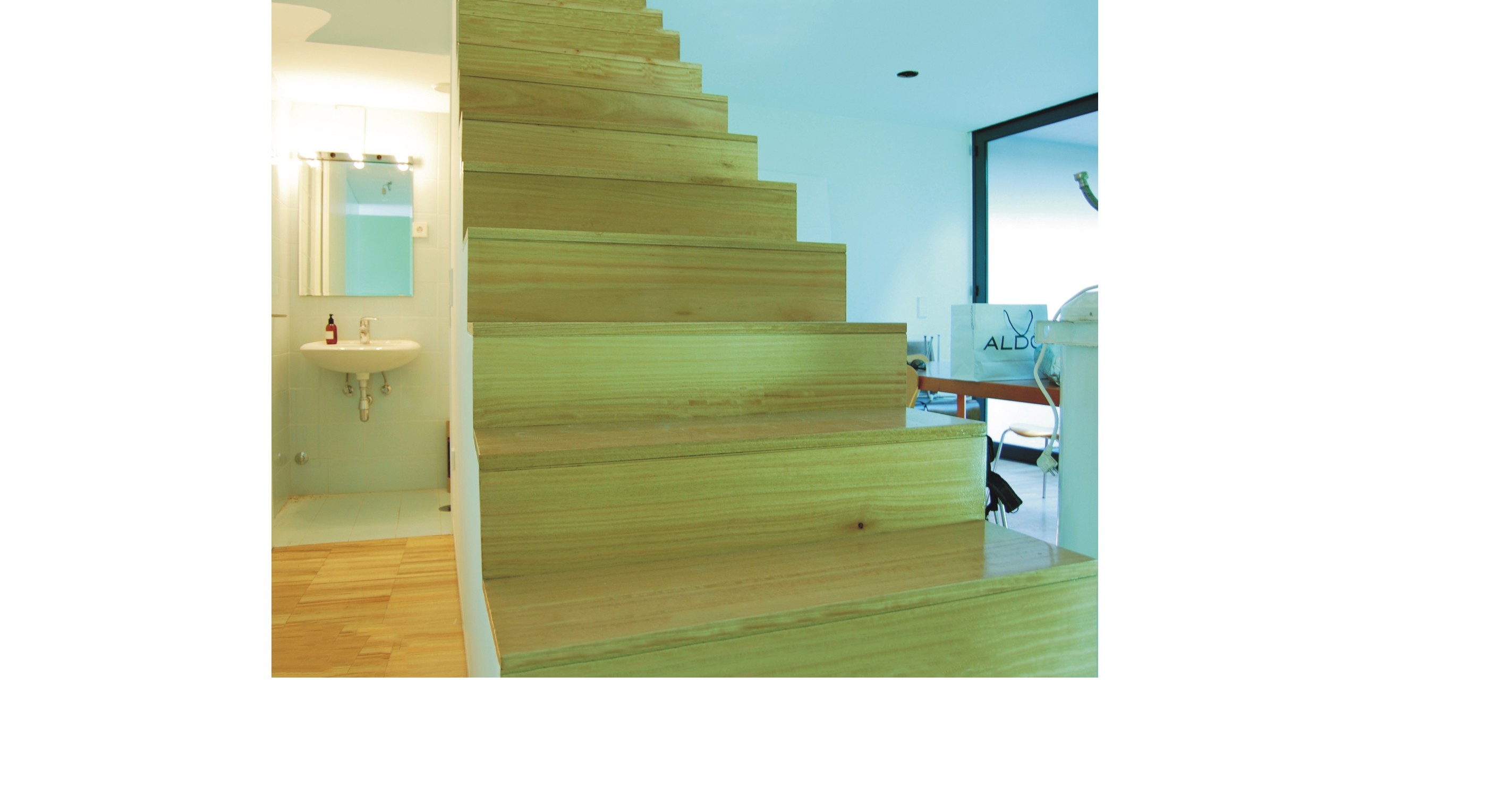 Trata-se de um projecto destinado a serviços e habitação composto por rés-do-chão, 1º e 2º andar, este último recuado. A fracção comercial ocupa o piso térreo, contornando o desenho imposto pelo uso doméstico. Ao fundo do logradouro, a meia cota entre as fracções, um anexo acolhe a lavandaria e arrumos da residência. Na habitação, para permitir a criação de espaços ventilados, salubres e condignamente iluminados ao longo de uma construção com 17,61m balizados entre duas empenas separadas por 5,86m, é proposto um pátio que permitirá, não só, morar o miolo da planta, como conter as aberturas deitadas sobre a frente urbana. Desde a entrada, ao nível térreo, ascende-se ao núcleo da casa: um pátio alavanca transparências, erotismo, reflexões e luz. No piso intermédio distribuem-se as salas, o pátio e a cozinha. Em cima, os quartos e um escritório. A partir deste, acede-se, também, ao coração da casa.