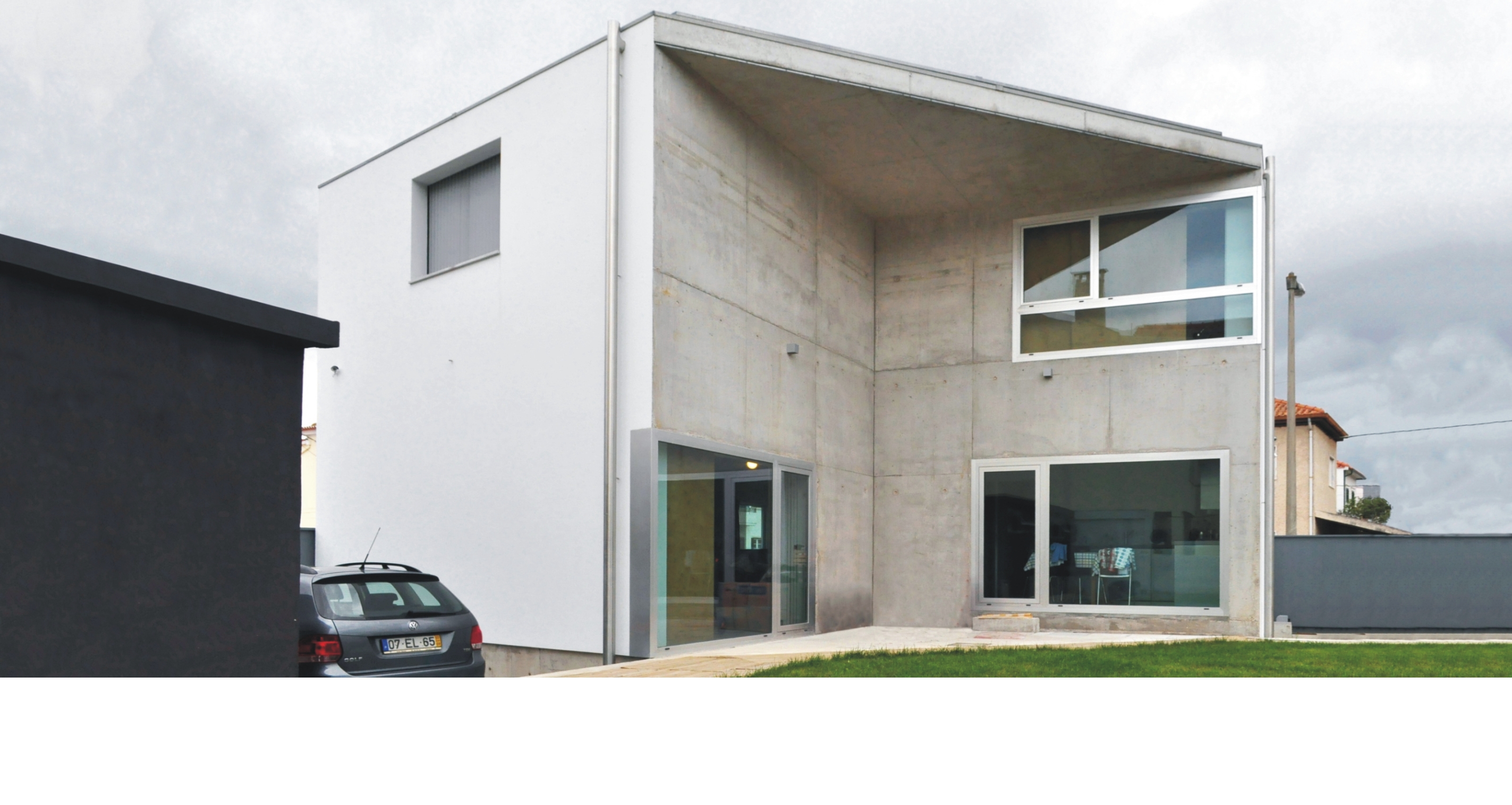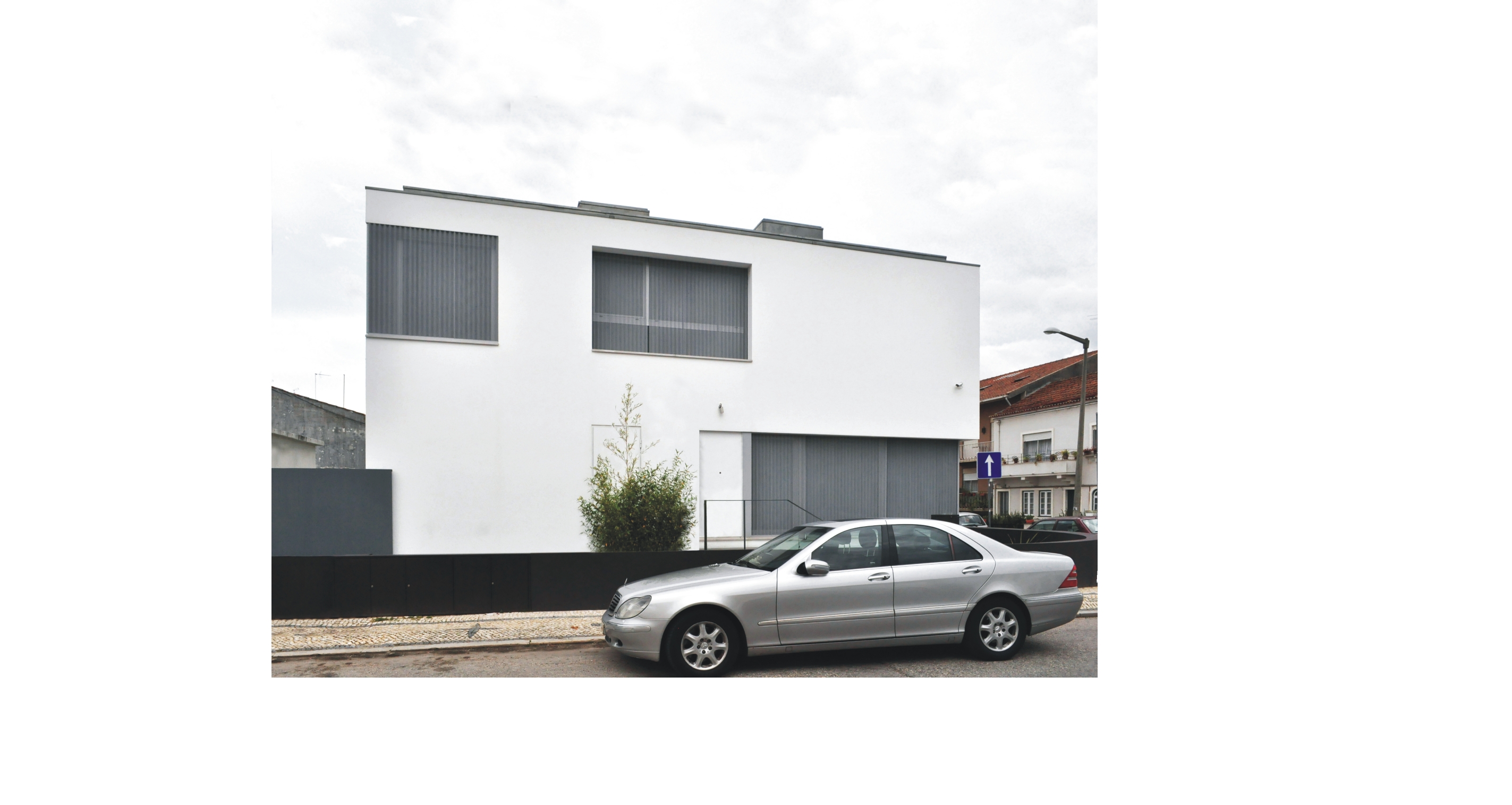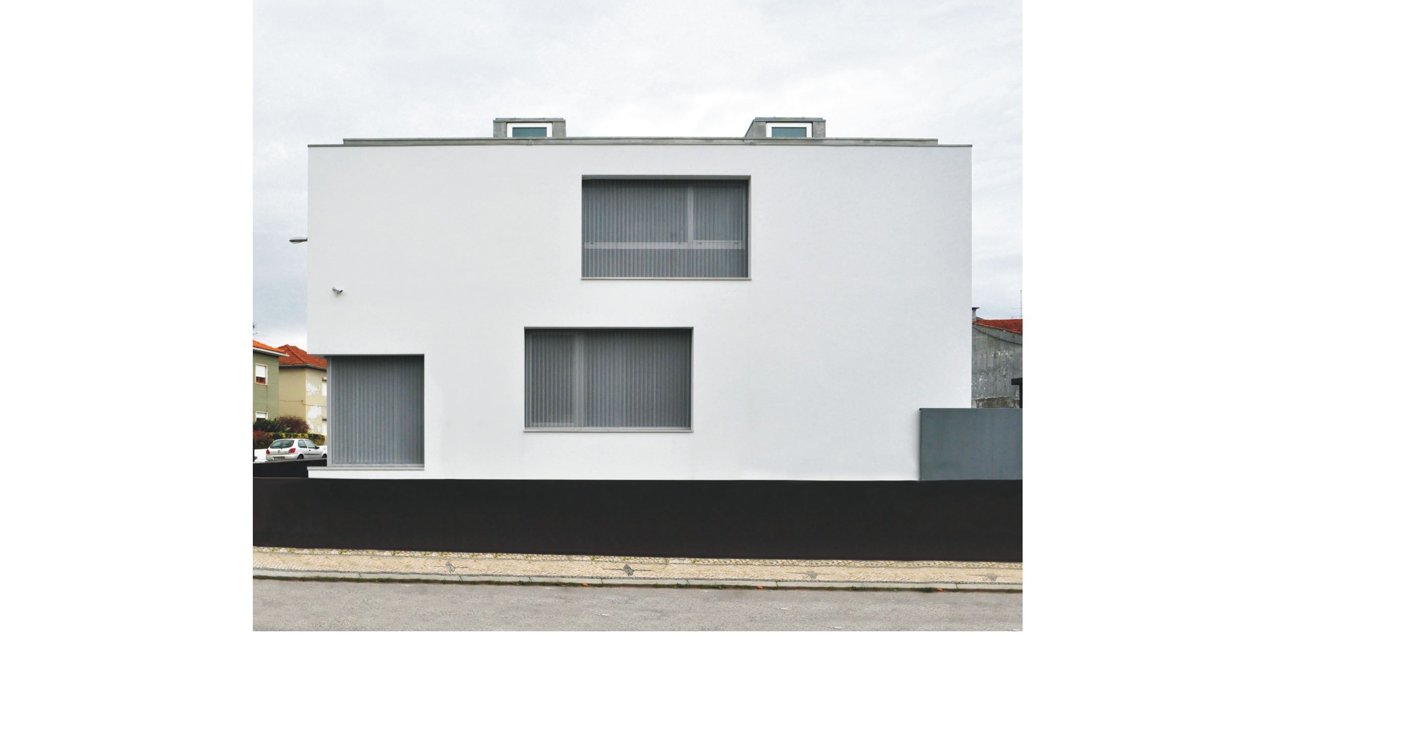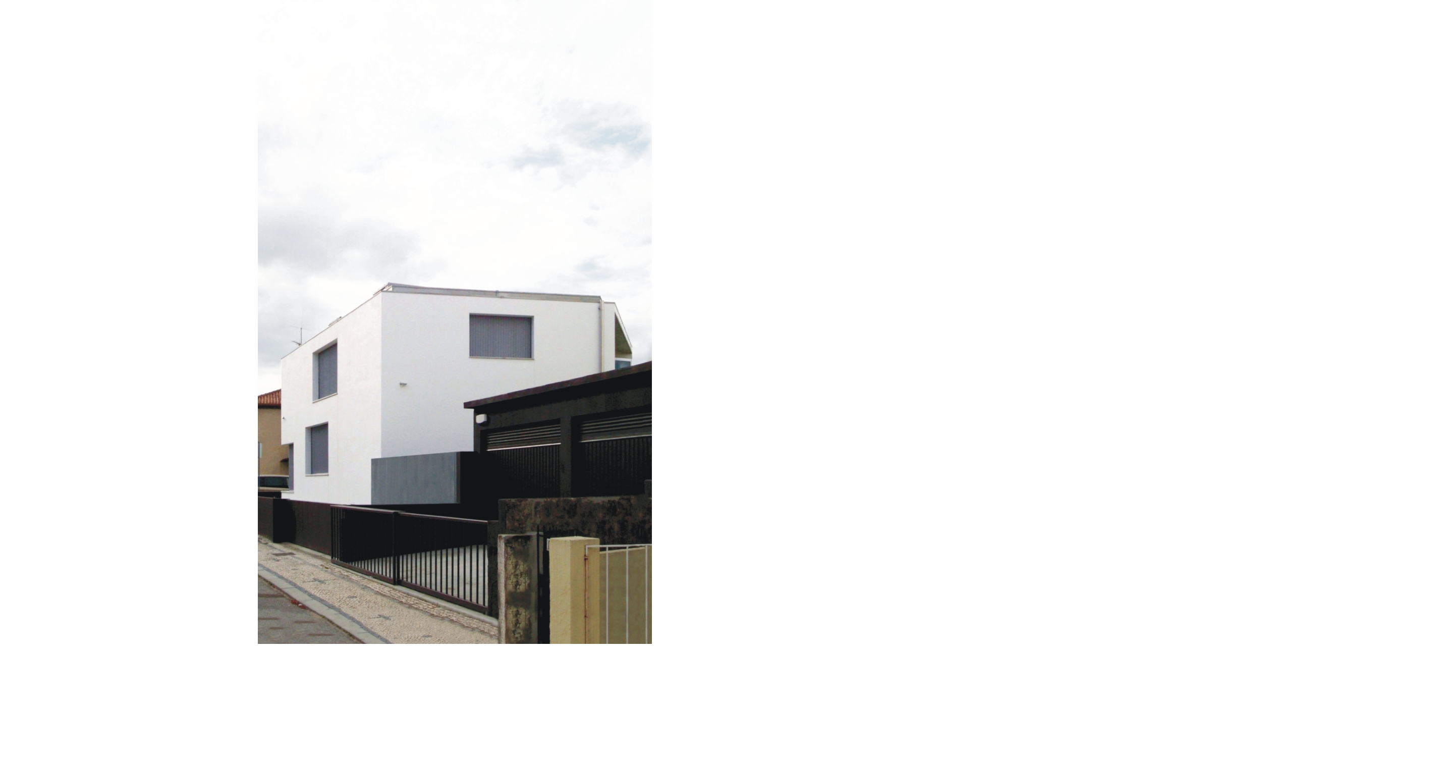 A forma nasce da estabilização de um jardim quadrado numa parcela recortada, de contornos indefinidos e sem parentesco com as envolventes. A intersecção do vazio com o pesado volume da construção, resulta numa área exterior resguardada do bairro e do clima. A composição volumétrica aposta no vinco da esquina do quarteirão através de dimensões iguais para as duas fachadas. Com a solução para as fenestrações – buracos na massa – pretende-se um diálogo «actualizado» com o conjunto urbano do Bairro Norton de Matos, resultando, também, na melhor resposta à forte proximidade entre o interior doméstico e os arruamentos (solução complementada pelas portadas exteriores). Contrapondo a austeridade do tratamento material nas elevações públicas, reduzido a reboco branco e alumínio anodizado, o pátio propõe-se como formalização de um escavado em betão aparente nos alçados, pavimento e cobertura.